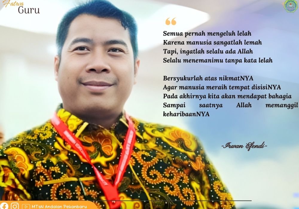 Semua pernah mengeluh lelahKarena manusia sangatlah lemahTapi, ingatlah selalu ada AllahSelalu menemanimu tanpa kata lelah Bersyukurlah atas nikmat-NYAAgar manusia meraih tempat disisi-NYAPada akhirnya kita akan mendapat bahagia Sampai saatnya Allah memanggil keharibaan-NYA Pekanbaru, 07 Aug 2024 Irwan Efendi