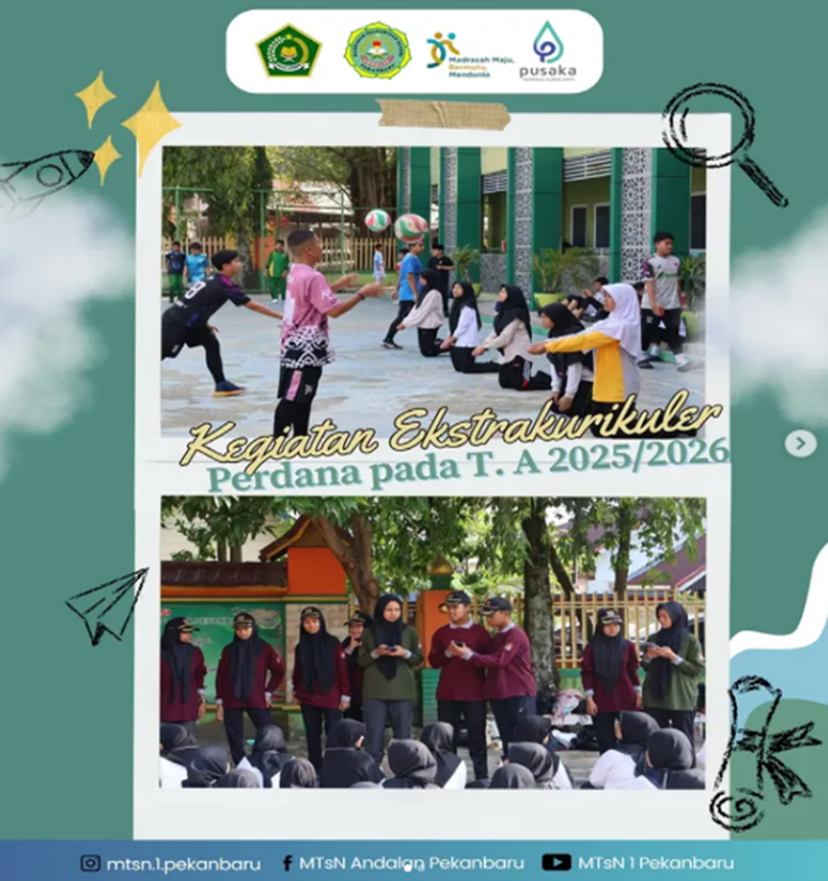 Tim Humas (AndalanNewsJunior) MTsN 1 Kota Pekanbaru – MTsN 1 Kota Pekanbaru resmi memulai kegiatan ekstrakurikuler perdana semester ganjil tahun ajaran 2025/2026 pada Sabtu (19/07/2025). Kegiatan ini diikuti oleh seluruh siswa/i dari kelas VII hingga IX, dengan berbagai pilihan ekstrakurikuler yang telah disediakan oleh madrasah.